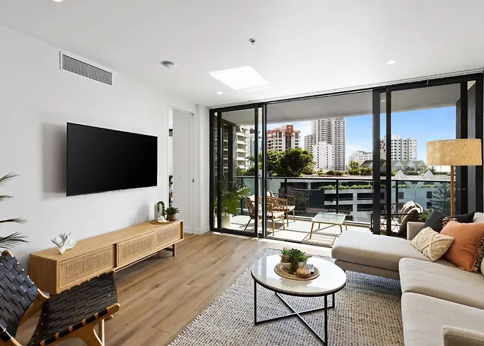 El Stylish And Modern Oracle 2 Bedroom Apartment - Coasthm cuenta con una cocina completa que se completa con un lavaplatos y un horno. El aeropuerto Gold Coast, el más cercano, se encuentra a 20 km de este alojamiento, mientras que la estación de autobuses Surf Pde at Broadbeach Mall está a unos 5 minutos a pie. Además, los huéspedes pueden practicar pesca para mantenerse activos.